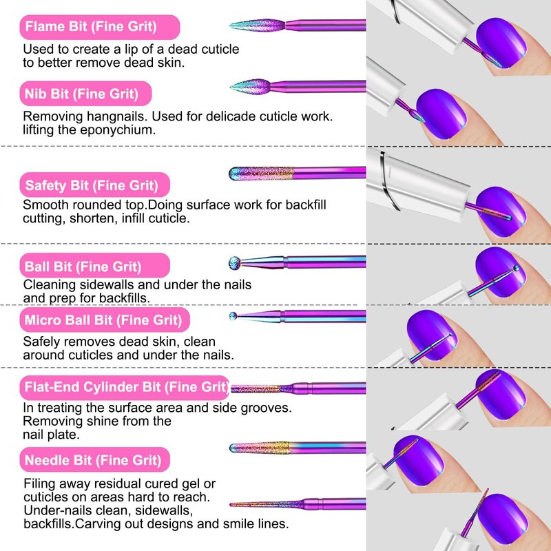 - One Kit for Beginners and Professionals: Our 30pcs nail drill bits are made by different materials. It perfectly fits for any nail art work like grinding, sharpening, carving, polishing, smoothing and cuticles removal, removing acrylic nails. Built to meet all needs for both beginners and professionals.