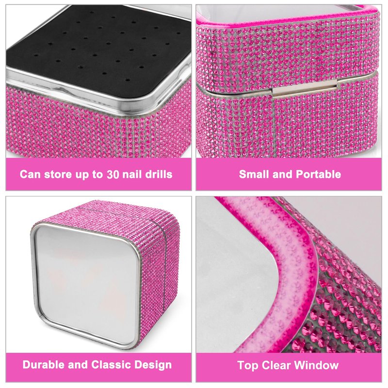 - Cute Nail Drill Bits Holder: Comes with a rhinestone metal nail drill bit storage box, it can store up to 30 nail drill bits, you can see the inside through clear top. It’s very convenient to carry it in your handbag, backpack, luggage case, even in your pocket.
