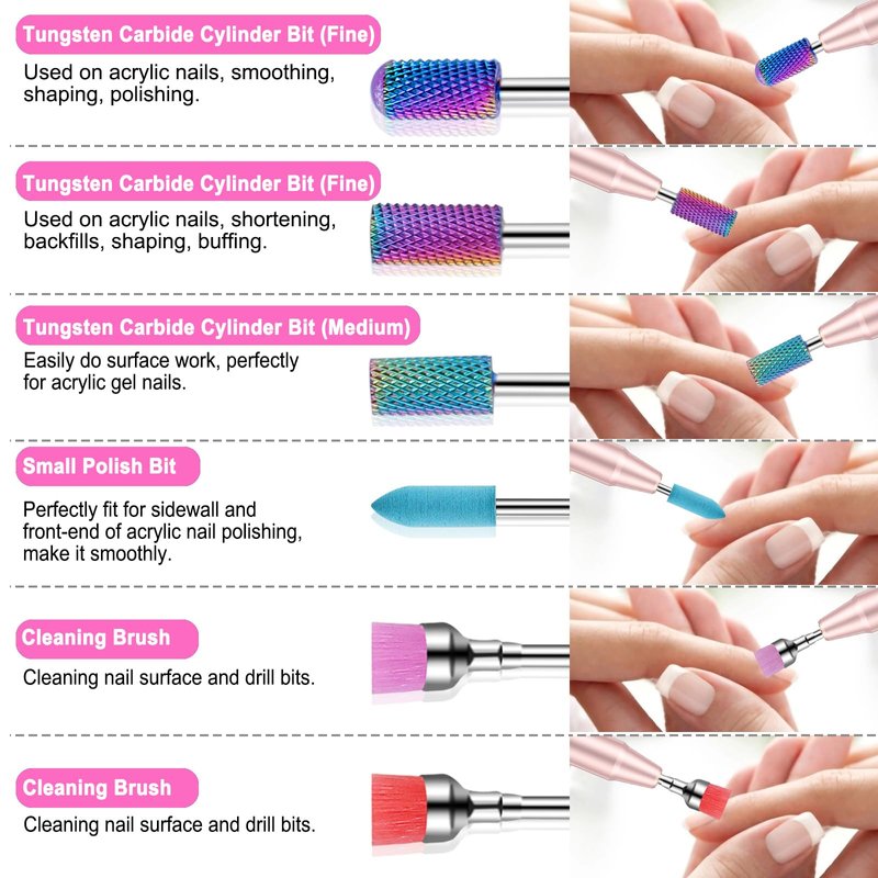 - Wide Range of Applications: These 3/32 inch nail drill bits for acrylic nails can work with most electric or rechargeable efile nail drill machines. Perfect for DIY nail art, beauty parlor, nail salon and personal manicure pedicure.