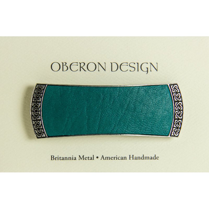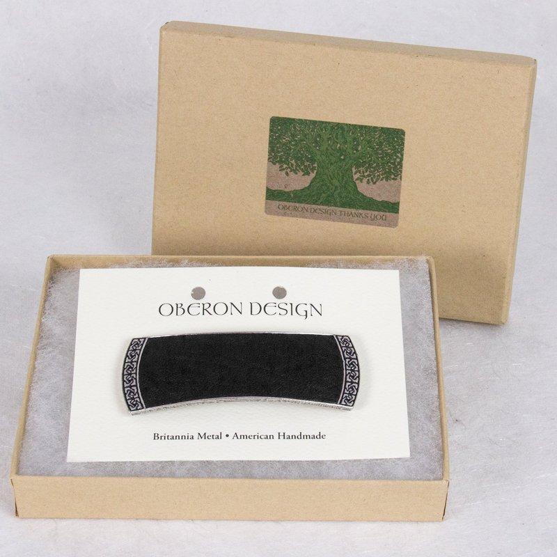 With a style that only fine, handcrafted accessories can achieve, this barrette is the perfect fit for all your favorite looks. Pull fine, thin hair into a classic low pony for a look that goes from the office to an evening out with ease. Curly, thick locks are gracefully tamed with a well-placed barrette, and formal pin-up styles are held securely (and beautifully) in place. You’ll discover that the Oberon Celtic Leather clip is so versatile you’ll reach for it again and again.