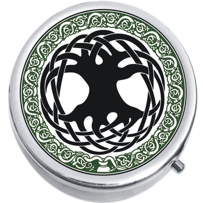 Celtic Tree Medicine Vitamin Compact Pill Box - Portable Pillbox case fits in Purse or Pocket