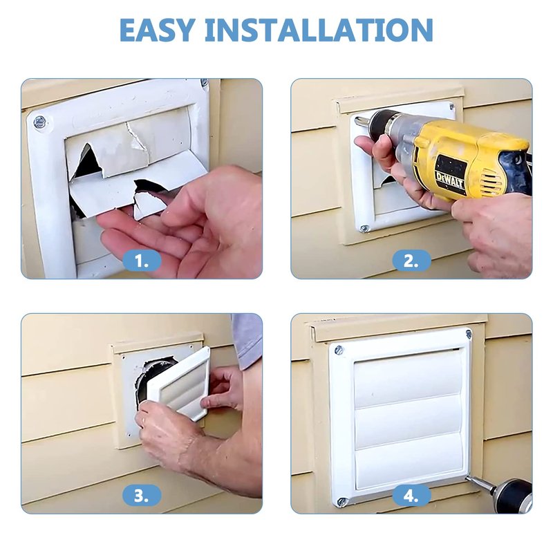 - 【 EASY TO INSTALL 】 : The Our Louvered Vent Cover is easy to install in a dryer or ventilated by a bathroom fan. You do not need professional tools or staff assistance, saving time and effort, simple installation, just spend ten minutes to direct the outdoor dryer vent cover to the ventilation pipe in your home, and then use the four stainless steel screws that come with our products to fix the outdoor dryer vent cover on the wall. It can be successfully installed.(Tips: To ensure your safety, disconnect the power supply before installation)