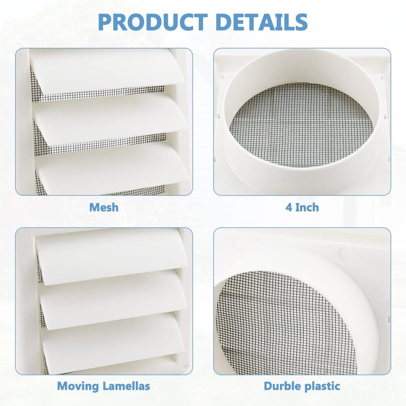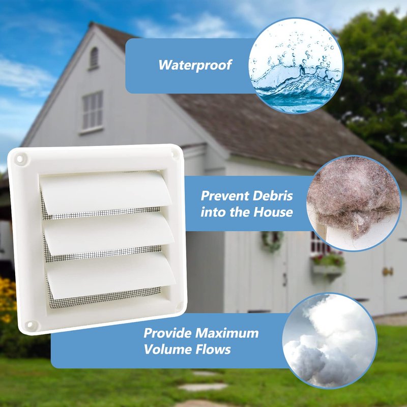 - 【 WIDELY USED 】 : Our outdoor dryer vent cover is suitable for 4-inch dryer exhaust pipe openings. You can use our products to ventilate your home bathroom, air conditioner, kitchen range hood, dryer, surrounding walls or other places. The Louvered Dryer Vent Cover will automatically open the fan blade when working, and close the fan page when the work is finished. Prevent external organisms from entering the exhaust pipe outlet, and ensure the air circulation at the exhaust cover of the outdoor dryer.