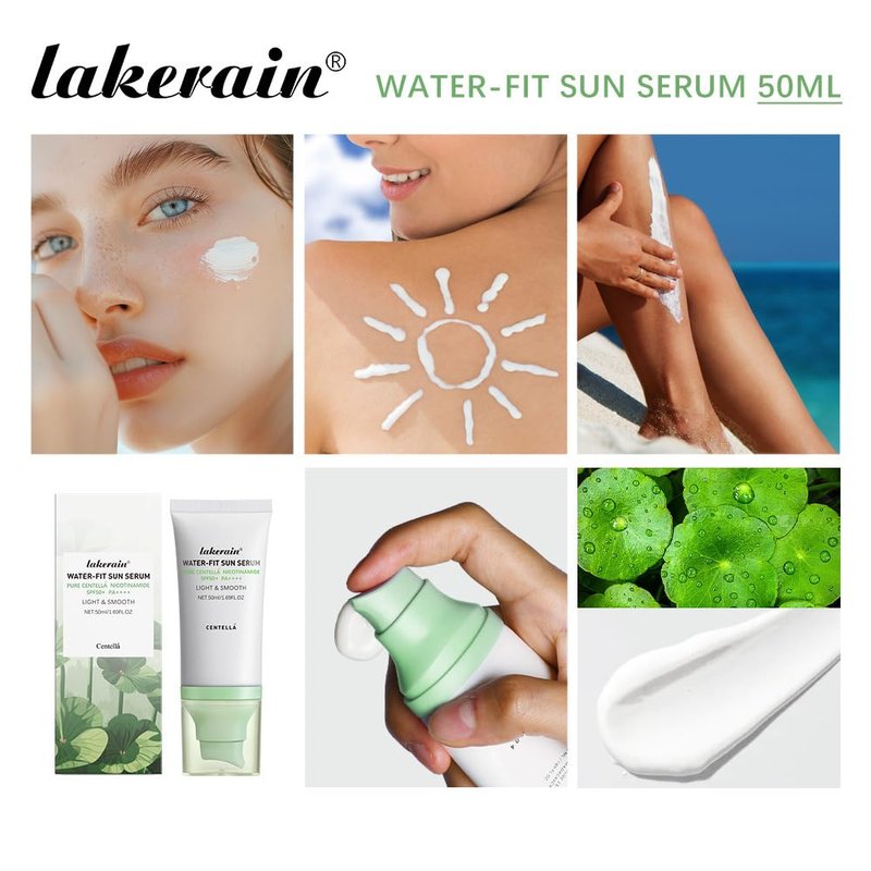 - Centella water-fit sun serum made from natural plant ingredients, long lasting hydrating skin and waterproof function