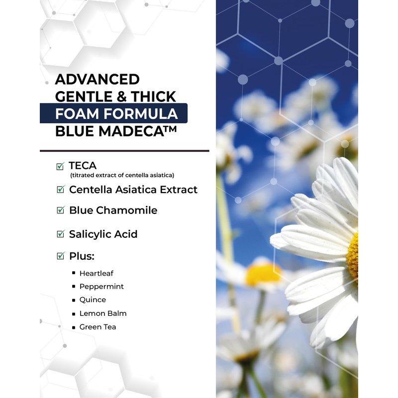 - FACE WASH FOR ACNE-PRONE SKIN - Our specially formulated face wash contains a powerful blend of natural soothing ingredients, including centella asiatica, TECA (titrated extract of centella asiatica), blue chamomile, salicylic acid, and a variety of botanical extracts, including fish mint, peppermint, quince, lemon balm, and green tea.