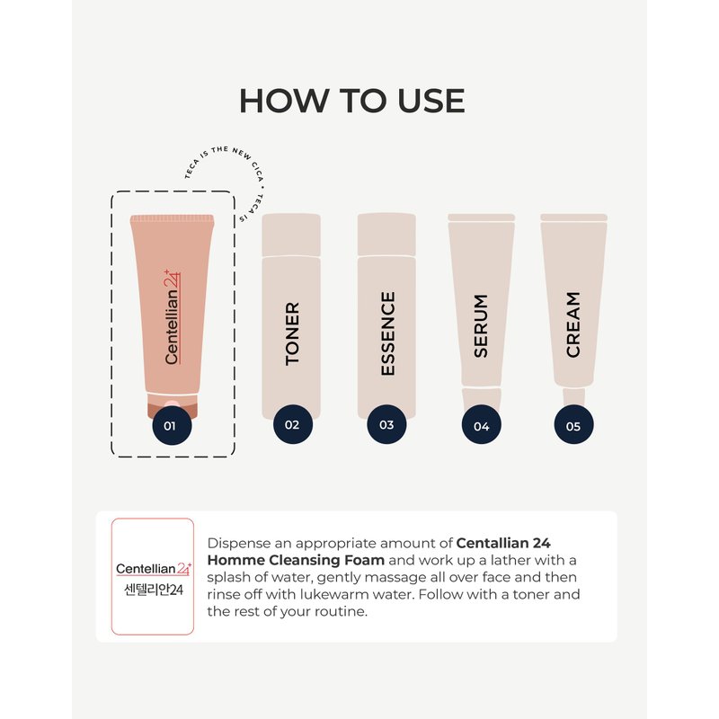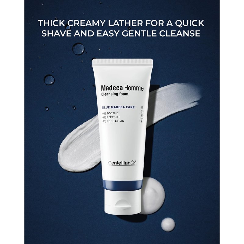 CENTELLIAN 24 Homme Cleansing Foam with TECA and Centella Asiatica for Soothing, Refreshing, and Pore-Cleaning - Gentle Daily Face Wash & Shave for Men for Sensitive Acne Prone Oily Skin (4.05 fl oz)