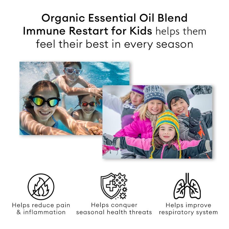 Center of Eden Immune Restart Kids, Organic Essential Oil Blend for Immune Support,100% Pure Therapeutic Grade, Non-GMO Eucalyptus, Peppermint, Tea Tree, Lemon, Frankincense
