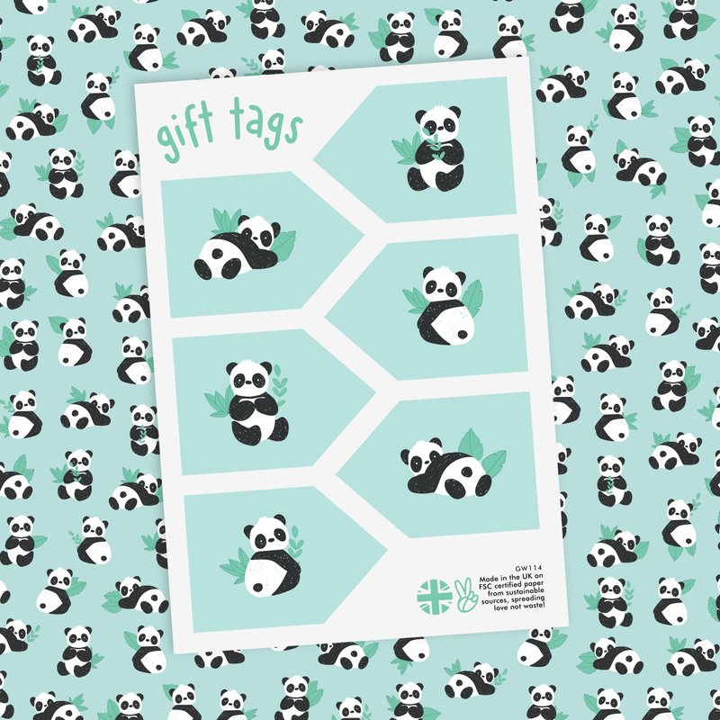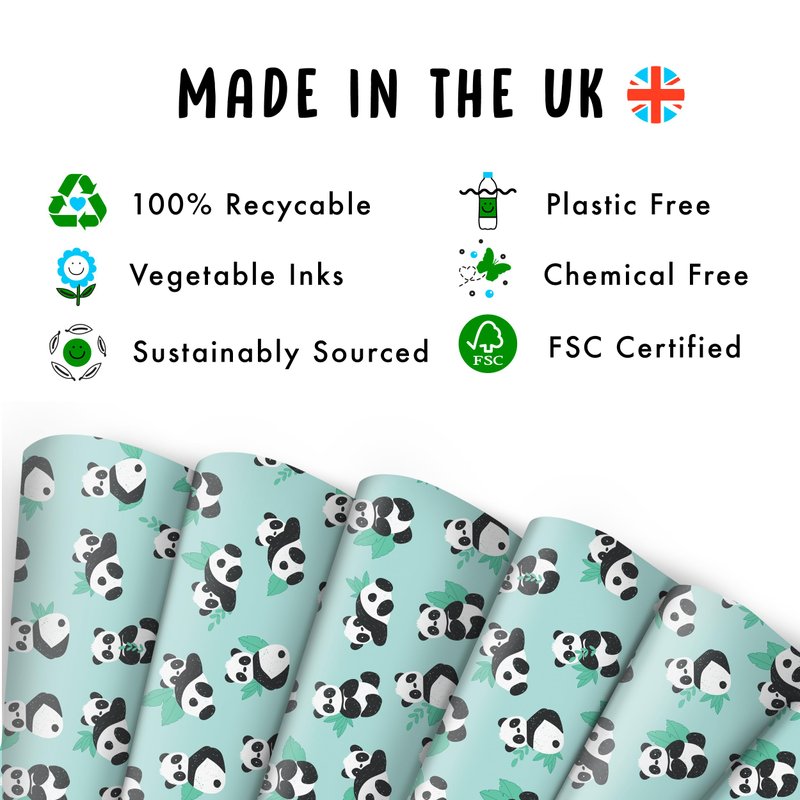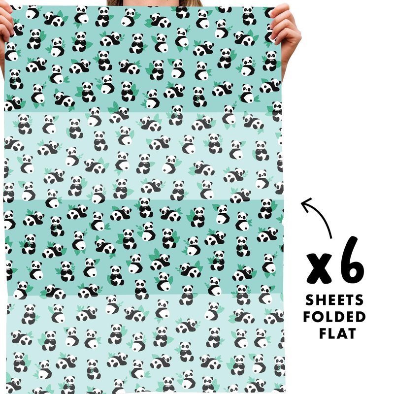 CENTRAL 23 - Green Wrapping Paper - 6 Sheets Gift Wrap - Birthday Pandas - Animals - For Men Women Boys Girls New Baby - Recyclable