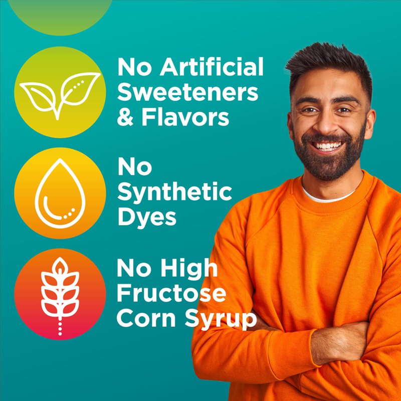 - A delicious fruit flavored gummy multivitamin made with no high fructose corn syrup, synthetic dyes, or artificial flavors or sweeteners