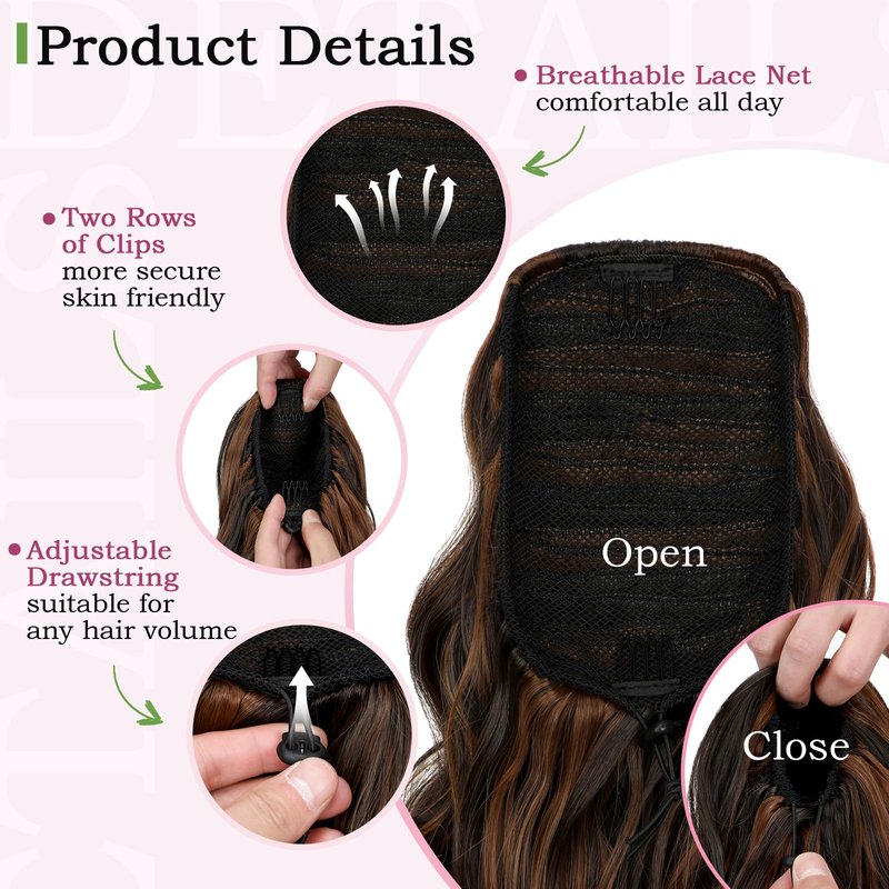 - 【Instant Volume and Length】 Boost your confidence with instant volume and length. The multi-layered design adds fullness and thickness to your hair, giving you a stylish and eye-catching look in seconds. Perfect for bad hair days or when you're in a hurry, just clip it on, tighten the drawstring, and you're ready to go.