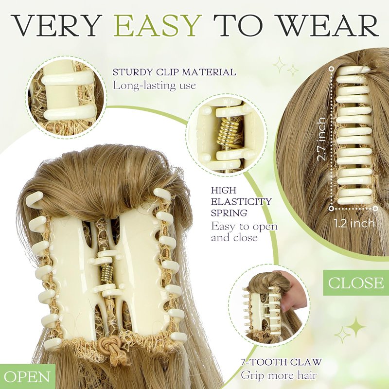 - Secure Hold: The sturdy claw clip design provides a firm grip, even on thick hair. No need to worry about the ponytail extension slipping or loosening—it stays perfectly in place all day long.