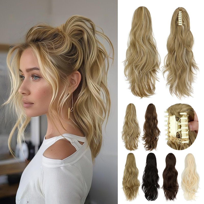 - Effortless Style: This 18-inch claw clip wavy ponytail is designed for instant, glamorous volume and length. Simply clip it on, and you're ready to go. Perfect for both casual and formal occasions, it gives you a full, luscious look in seconds.
