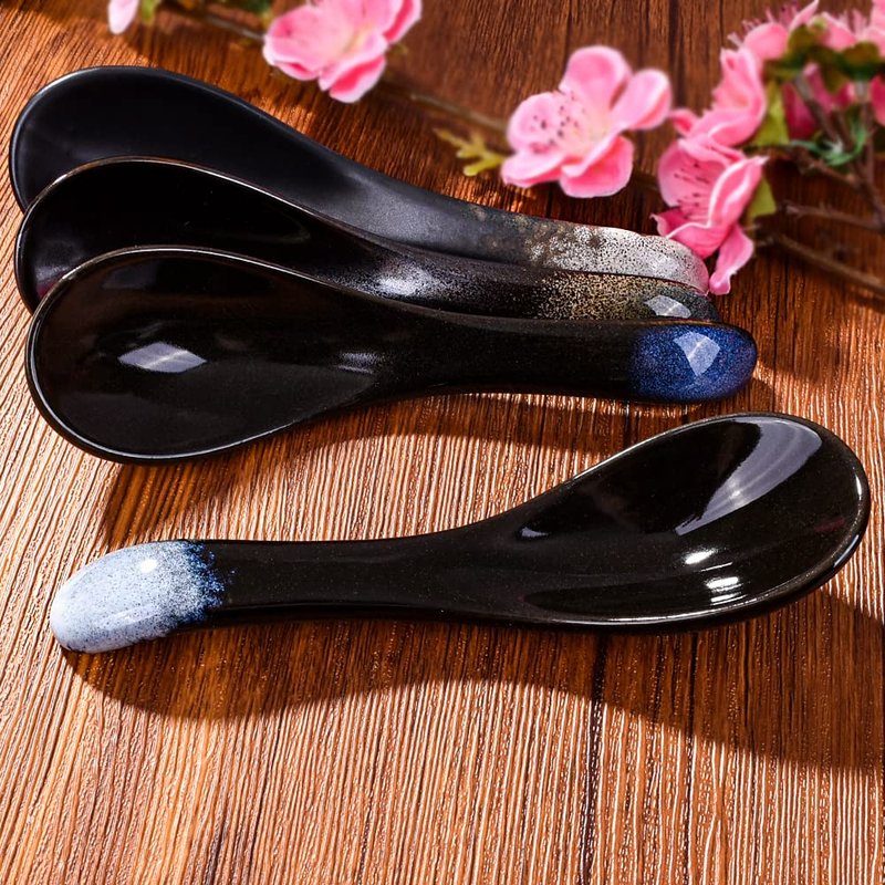 - Spoons size: 5.7 inch length, 1.7 inch width, A total of 4 spoons, 3 glazed porcelain spoons, 1 no glaze vintage spoons, please understand before buying.