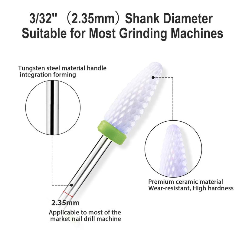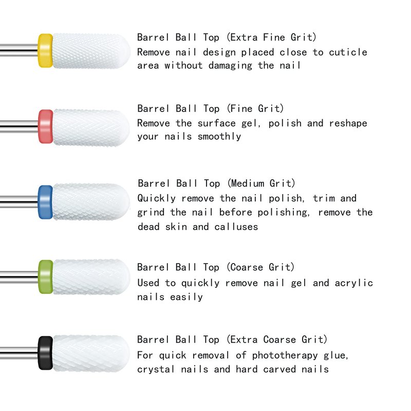 - 【5pcs Ceramic Drill Bits】There are coarse grit, extra coarse grit, fine grit, extra fine grit, medium grit 5 ceramic drill bits models can adapt to different strengths to accomplish varied professional nail jobs. Such as sharpen, grind, neaten, carve, smoothen, polish, and reshape gel and acrylic nails very quickly and efficiently.
