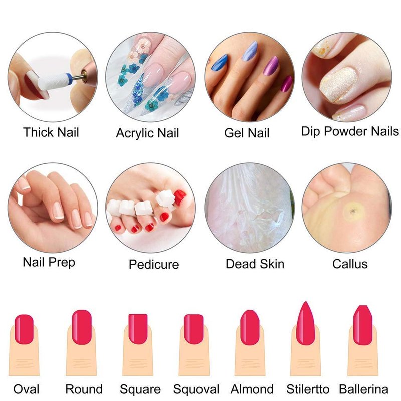 - 【Multifunction Nail Drill Bits Set】Nail drill bits are used for polishing nail surface or even getting into tight areas such as sidewalls and cuticles part. Not hurt the nails even repeated grinding. Takes off the gel polish, dip powder, or acrylic layer in half the time without any effort.