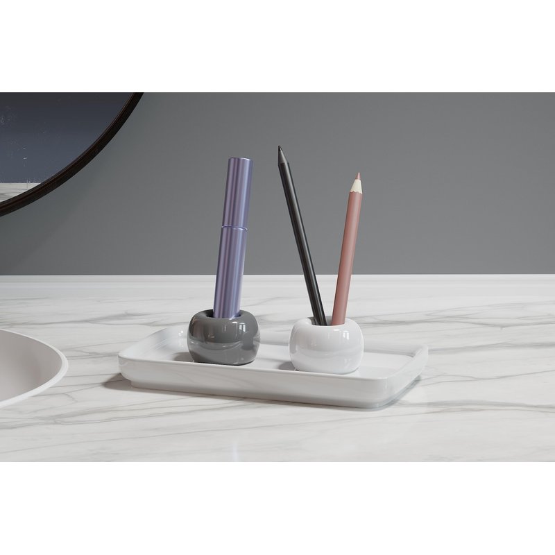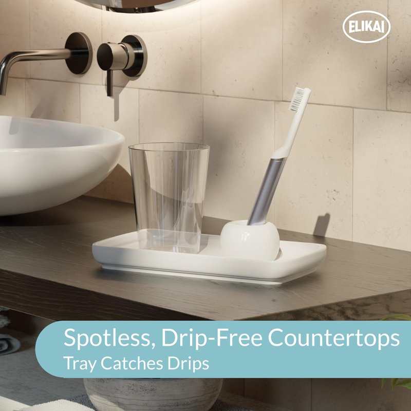 If you are looking for a way to keep your toothbrushes clean while keeping your countertop water-free, the ELIKAI Toothbrush Holders and Tray Set is your answer. The minimal but modern looking toothbrush holders and tray set helps air-dry your toothbrushes (no more nasties on the bottom of your cups!) while the white tray prevents water on your countertops from a dripping toothbrush. Very easy to clean, the ELIKAI Ceramic Toothbrush and Tray Set will help declutter your countertop from any cups, containers, or bulky organizers. Other great features include: (1) different color holders to help differentiate your toothbrushes (2) Holes at the bottom of the holder to let water seep through but caught by the tray keeping it clean (no more build up!) (3) The holders are separate from the tray for easy cleaning white ceramic tray helps protect and keep surfaces clean. (4) Doubles as a razor, stationary, or make-up organizer. Use it for pens, pencils, mascara, your Ipad pen, etc. As with with all ELIKAI products, it comes with a hassle-free 100% money back guarantee and our assurance to you that if we don't use it ourselves everyday at home or at the office, we won't sell it.