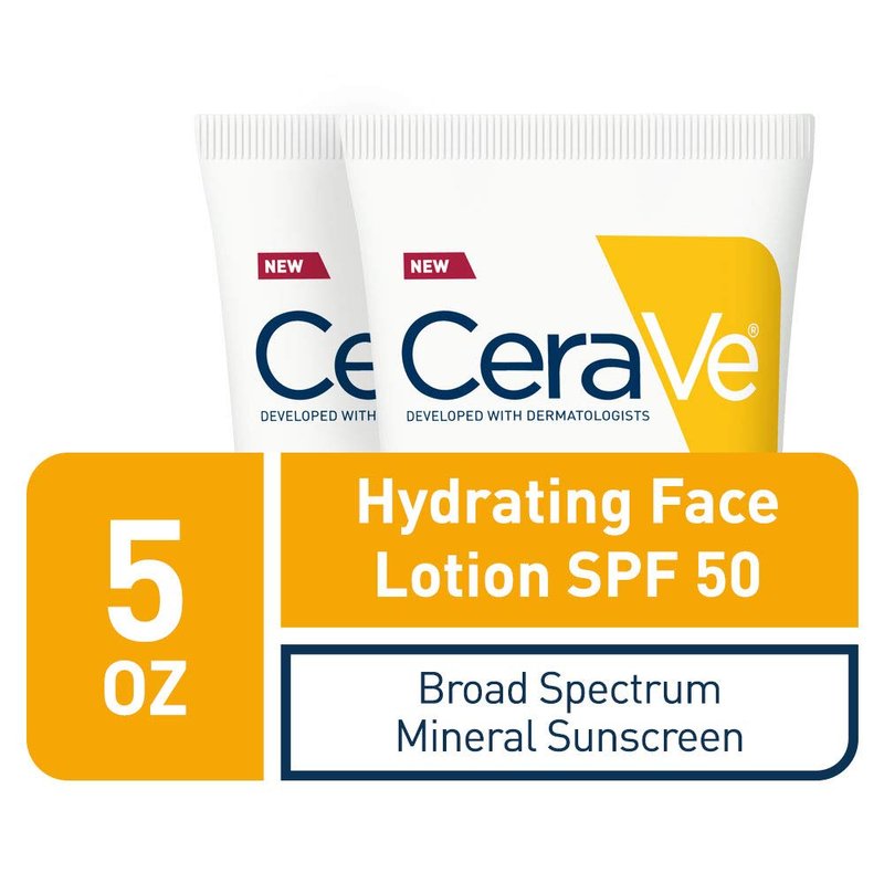 CeraVe 100% Mineral Sunscreen Spf 50 | Face Sunscreen With Zinc oxide & Titanium Dioxide for Sensitive Skin | 2.5 Oz, 2 Pack