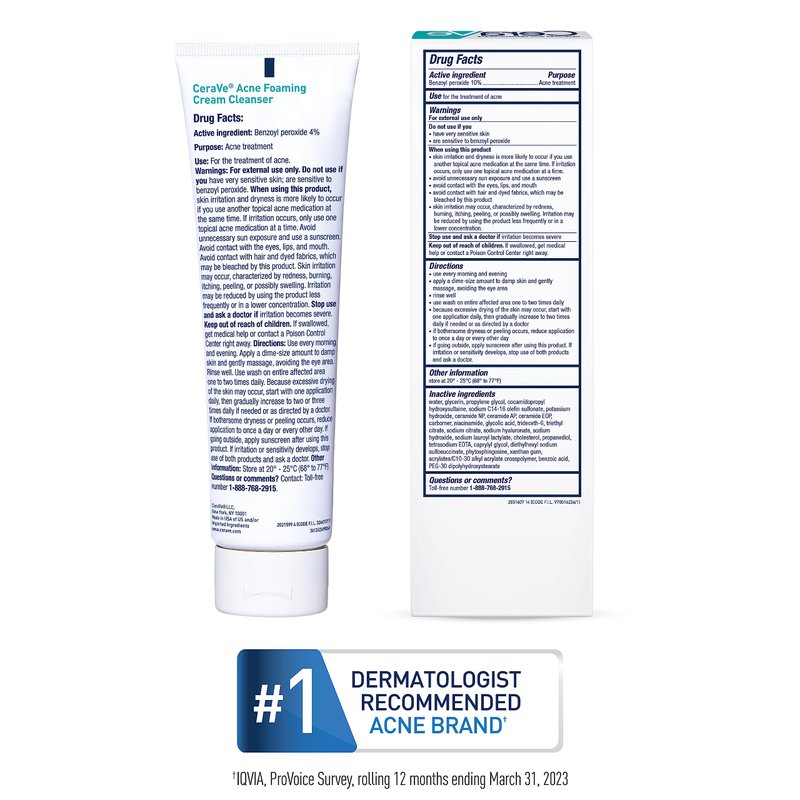 CeraVe Acne Foaming Cream Wash | Gentle Face and Body Acne Cleanser with Benzoyl Peroxide 10%, Hyaluronic Acid, and Niacinamide | Acne Treatment Clears Pimples, Blackheads, Chest and Back Acne | 5 Oz