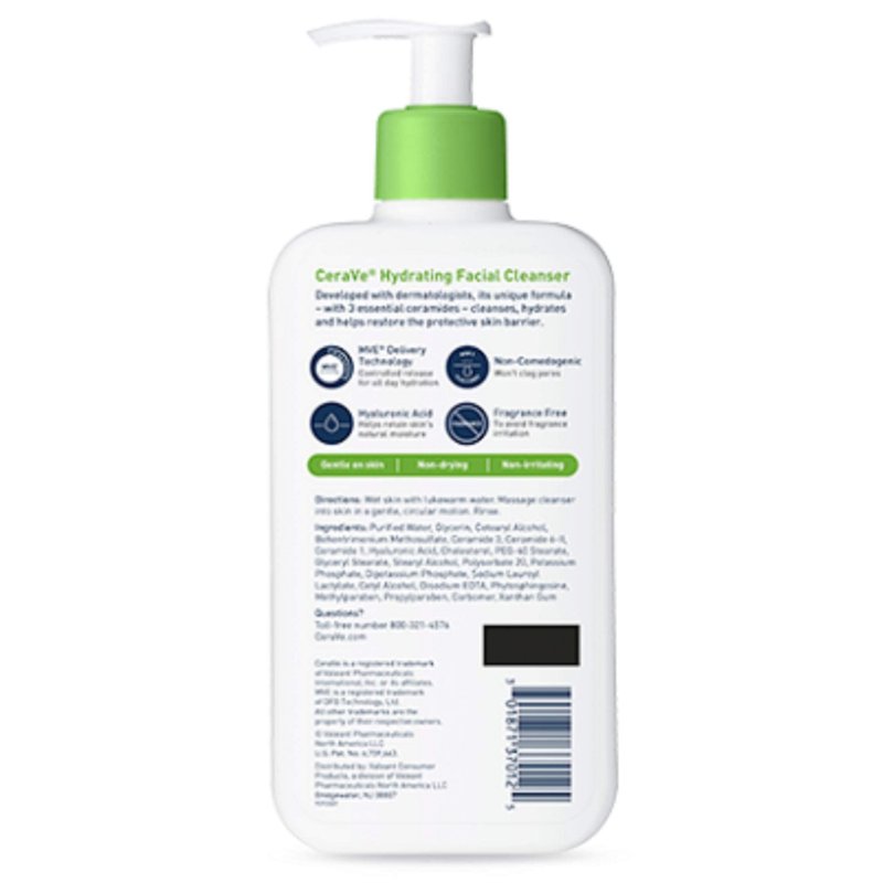CeraVe Hydrating Facial Cleanser can do all that without disrupting the skin’s natural protective barrier or stripping the skin of its natural moisture. It is a gentle face wash with ingredients like ceramides and hyaluronic acid that work to restore the skin’s natural barrier to help the skin lock in moisture.