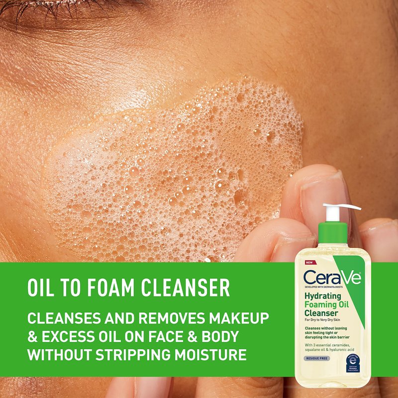 CeraVe Hydrating Foaming Oil Cleanser | Foaming Oil Wash with Squalane Oil, Triglyceride, Hyaluronic Acid and Ceramides | For Dry to Very Dry Skin | 19 Oz
