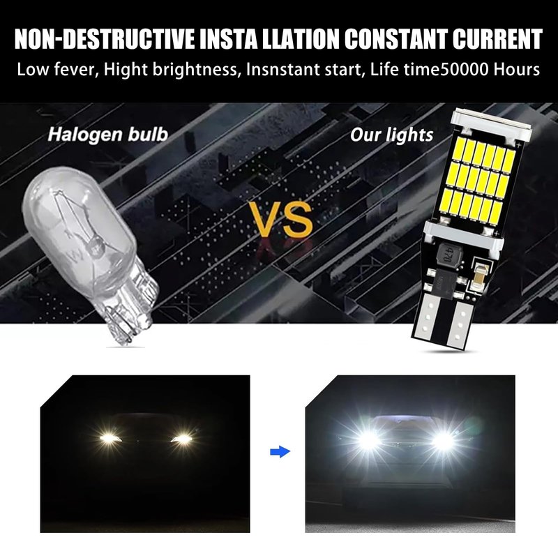 - Package Contents: There are four 4 car LED bulbs in the package, model T15 4014 45SMD, each bulb has 45pcs 4014 high brightness LED chips, size 41mm x 13mm/1.6" x 0.5", with 4 colors for your choice, please check if your car is compatible with this bulb model before purchase.