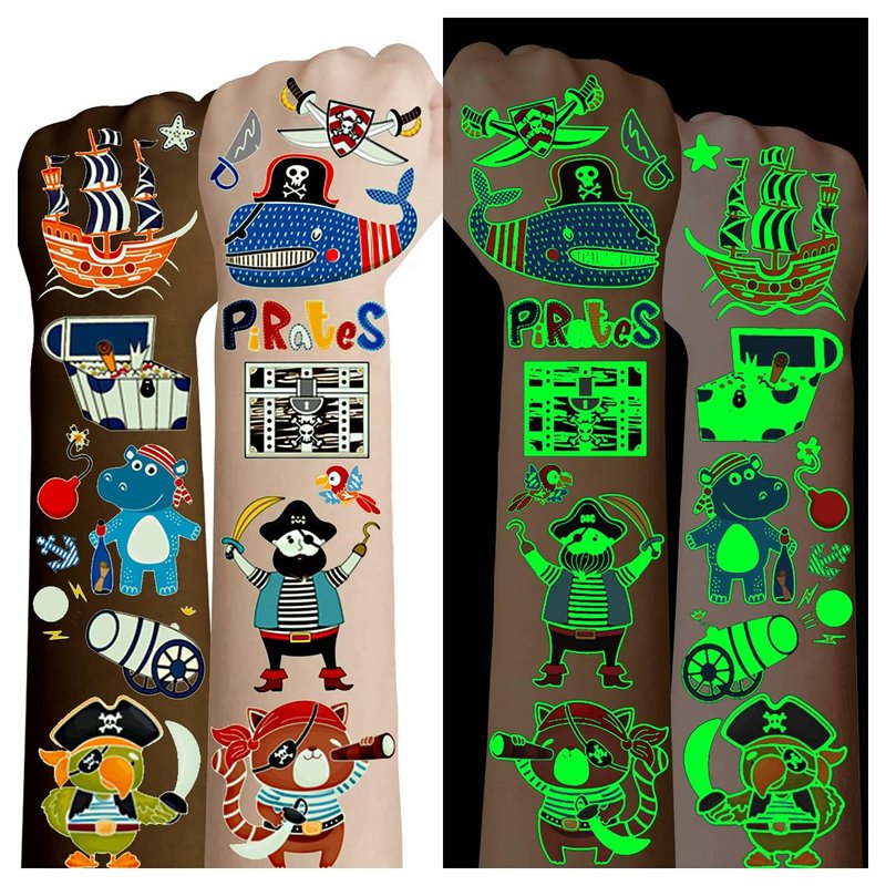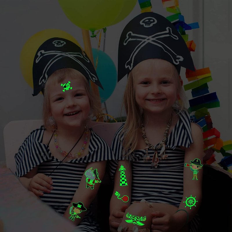 - 【Pirate Party Decoration】Cerlaza luminous pirate tattoos make your party surprise! Colorful and plentiful patterns, are choice for pirate party supplies decorations, kids party favors, DIY activity, gifts for kids. Kids can freely share these tattoos with their friends. The tattoos are sticked on their bodies to bring joy to them, especially at night, glowing pirate patterns make your party more funny!