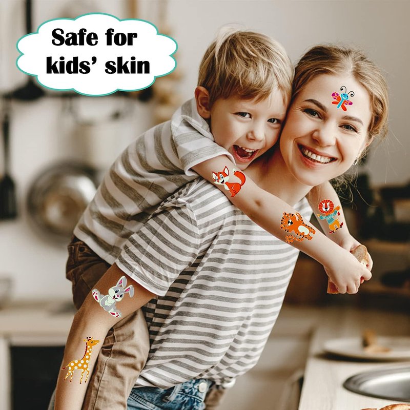 Our tattoo materials are safe and non-toxic, and will not cause allergies to children's skin. The patterns are bright and long lasting. Generally, they can last for 3-5 days, depending on the applicable area.