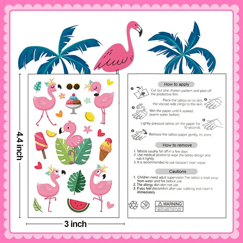- Applicable Scene: For flamingo party supplies, party favors, birthday party decorations, Hawaiian/luau/tropical/pool/beach theme party accessories. These cute flamingo tattoos stickers will bring more flavor to your party!