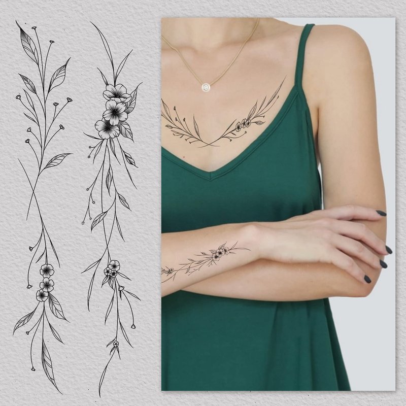 - Style and Quantity: small cute flower branch temporary tattoo stickers, different from the ordinary large black flower tattoos, suitable forwomen girls who like or want to try a small fresh style.