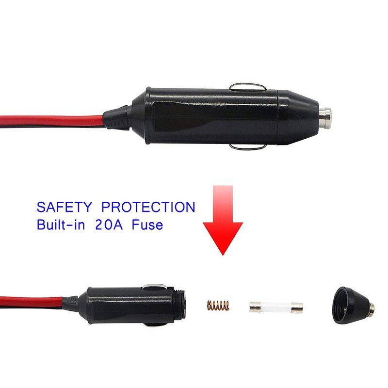 - OVERLOAD PROTECT- This heavy-duty cigarette lighter extension cable uses copper wire to provide steady current to your equipment. A replaceable 20A fuse is built into the plug of the cigarette lighter,if the current is higher, the fuse will be blown out for protection.