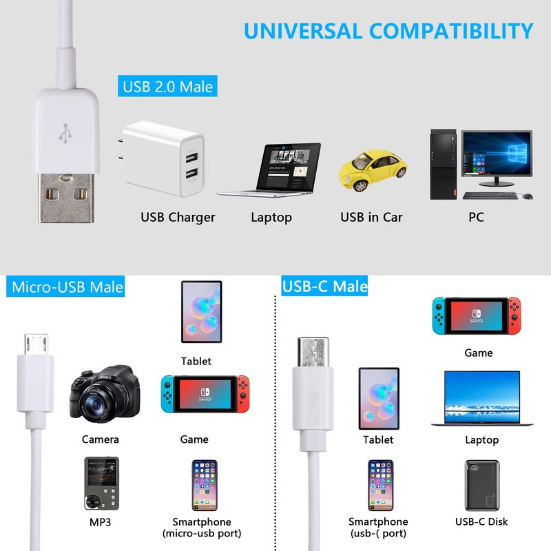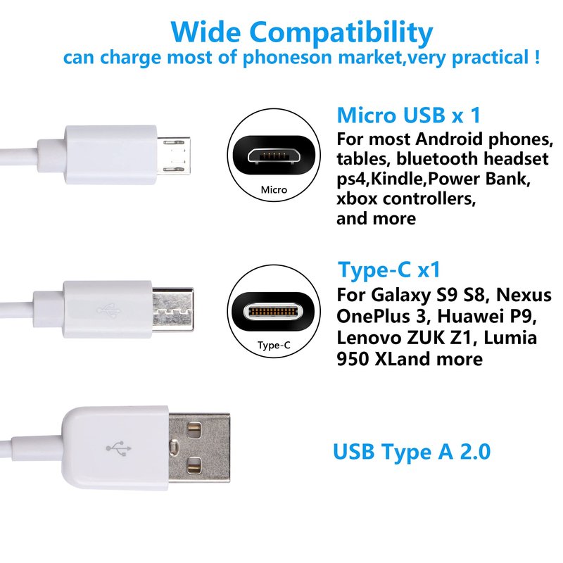 - Universal Compatible:For USB C devices,work with all USB Type-C devices .For micro usb devices,work with most Android and Windows phones, tablets and many other devices with micro usb port.