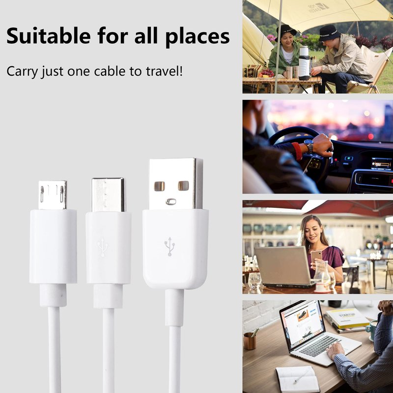 - 2-in-1 Multi USB charging cable design, built-in Micro USB and USB-C connectors. Works with most Android devices and also works with Type C ports. 1 cable can meet your 2 different needs. With 1 cable, you don't need to carry any other cables when you're in the car, office, or traveling.