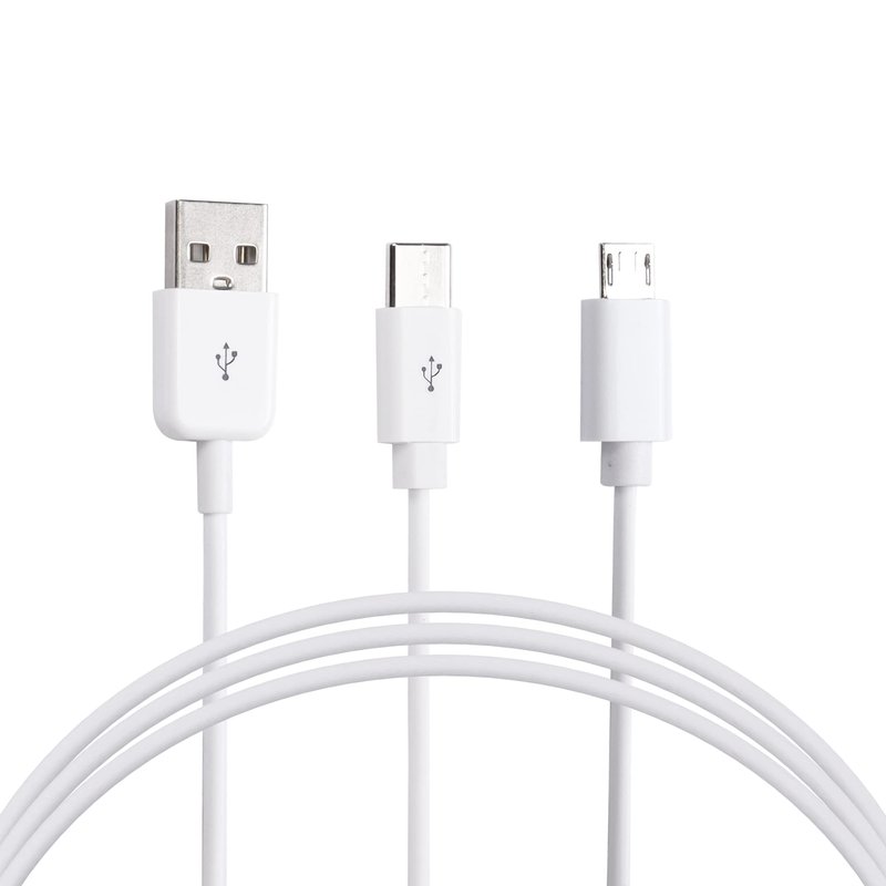 2-in-1 Charging Cable: Unique multi-charging cable with Micro USB and USB Type C brings you a feeling of convenience and sharing.You can take this multi-charger cable anywhere, perfect for home, car, office, travel, docking or sharing with friends.Features:1.Connector A: USB 2.0 Type A Male2.Connector B: USB Type C Male(Support charging and transferring data)3.Connector C: Micro USB Male(Only supports charging)4.Cable Length:0.3m/1ft5.Color:White6.USB Type C: Data transfers speed can up to 480Mbps.7.The micro usb only supports charging and does not support data transfer.8.Universal Compatibility:The Micro usb port:For Wireless keyboards/Cameras/Camcorders/Portable Charger/GPS devices/Games consoles/Bluetooth speakers/MP3 player,for all other micro USB connecting devices.The USB Type C: For tablet,phone ,laptop and other type-c cable devices.