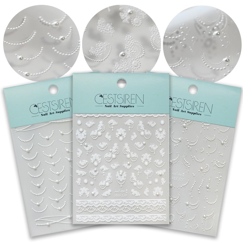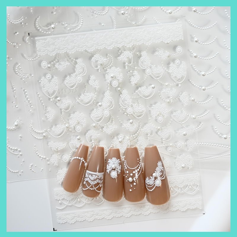 - 【Nail Stickers Set】: You will get 3 sheets of white lace french line nail stickers in 3 different styles.All of the stickers come with pearl.Enhance your nail art creations with the included pearl, adding a touch of glam and sparkle to your designs for a truly eye-catching and luxurious look.