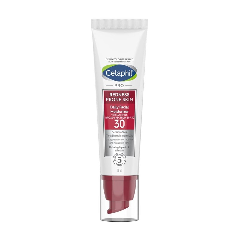 - CETAPHIL REDNESS RELIEVING DAILY FACIAL MOISTURIZER SPF 20: Specially formulated for redness-prone skin, this neutral-tinted moisturizer neutralizes the appearance of redness, evens skin tone and hydrates the natural protective skin barrier, leaving it soothed and balanced