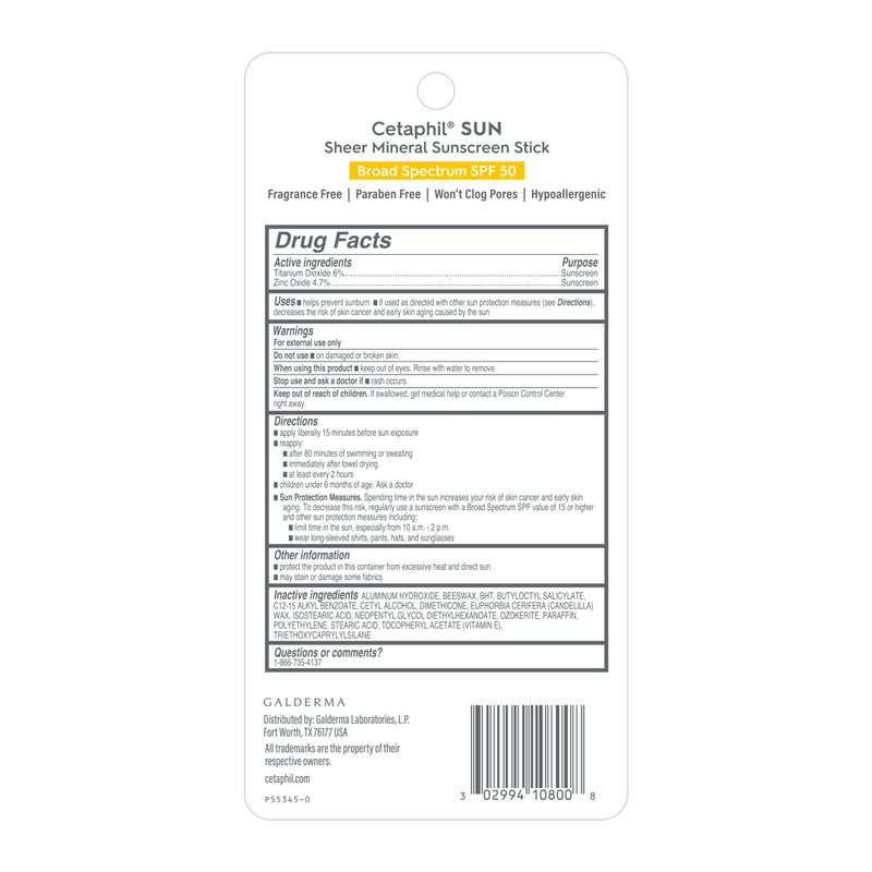 - CETAPHIL SHEER MINERAL SUNSCREEN STICK SPF 50: Nourishes sensitive skin while providing hydrating, chemical free sun protection