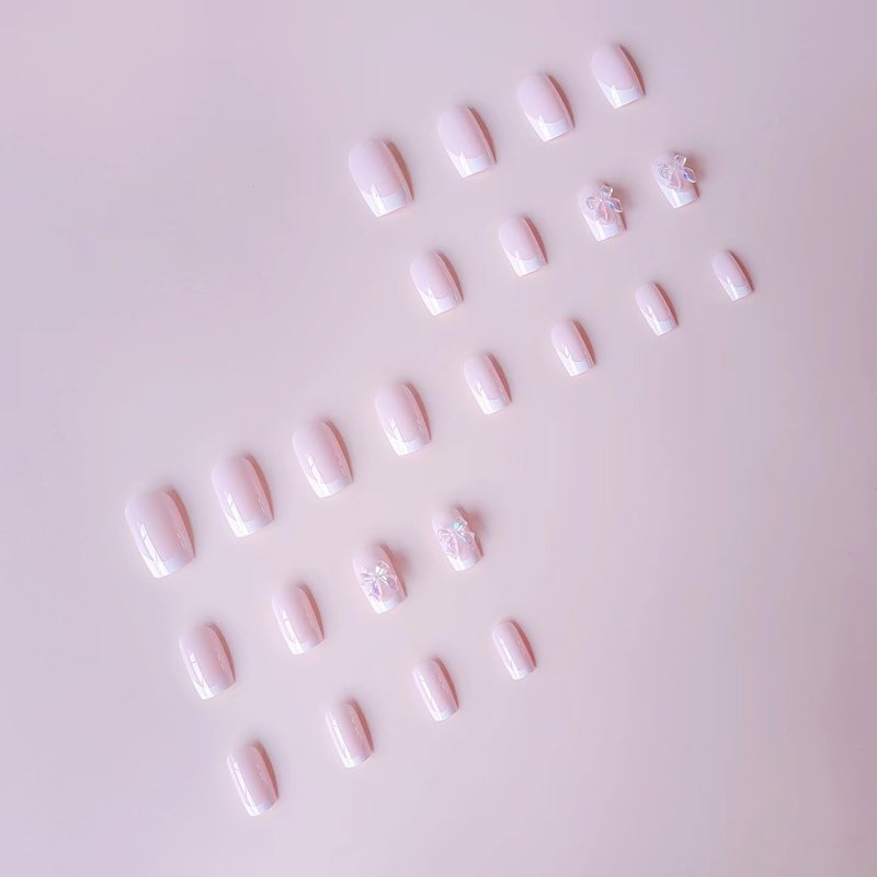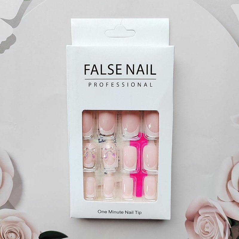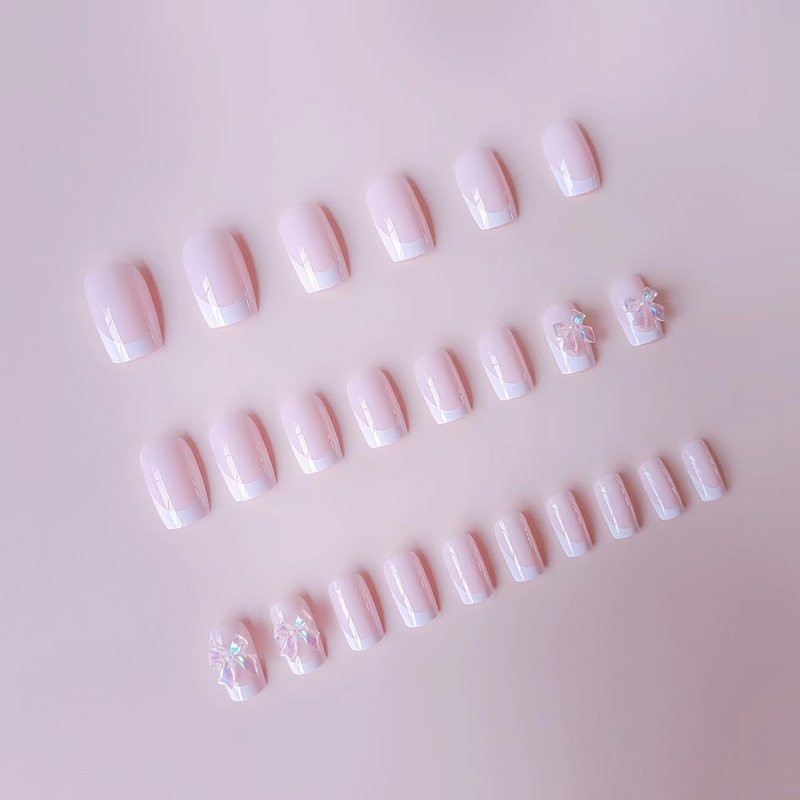 - 【Easy Application】White french tip fake nail with bow charms designs just choose the nail piece that suits you, polish the nail bed, paste the jelly glue we give away, and press trendy nails for 30s to get the natural manicure that girls like.