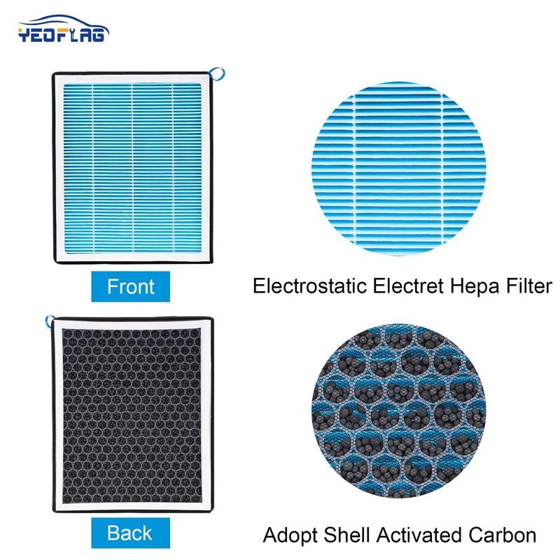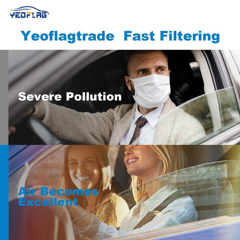 - HONEYCOMB DESIGN + ACTIVATED CARBON: Yeoflagtrade car filter adopts high-density electrostatic electret filter and special honeycomb design, which can more effectively absorb particles and gases, and filter particles above 0.3 microns within 30 minutes.
