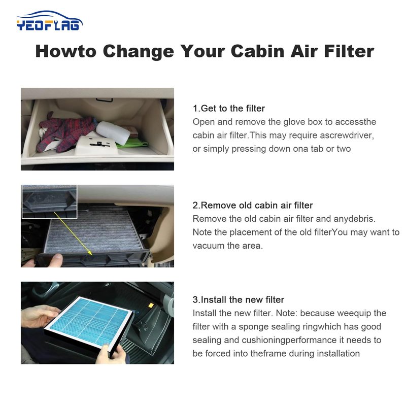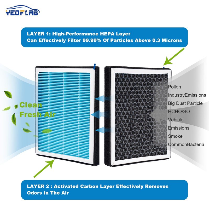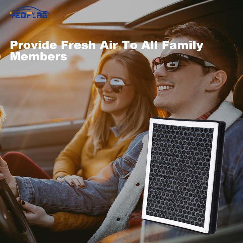- ULTRAFILTRERING: Yeoflagtrade air cabin filter more effectively block Pm2.5 haze, particulate matter, dust, and other harmful substances. Remove peculiar smells, clean the air in the car and bring Slight Pleasant Aroma Frangrance!