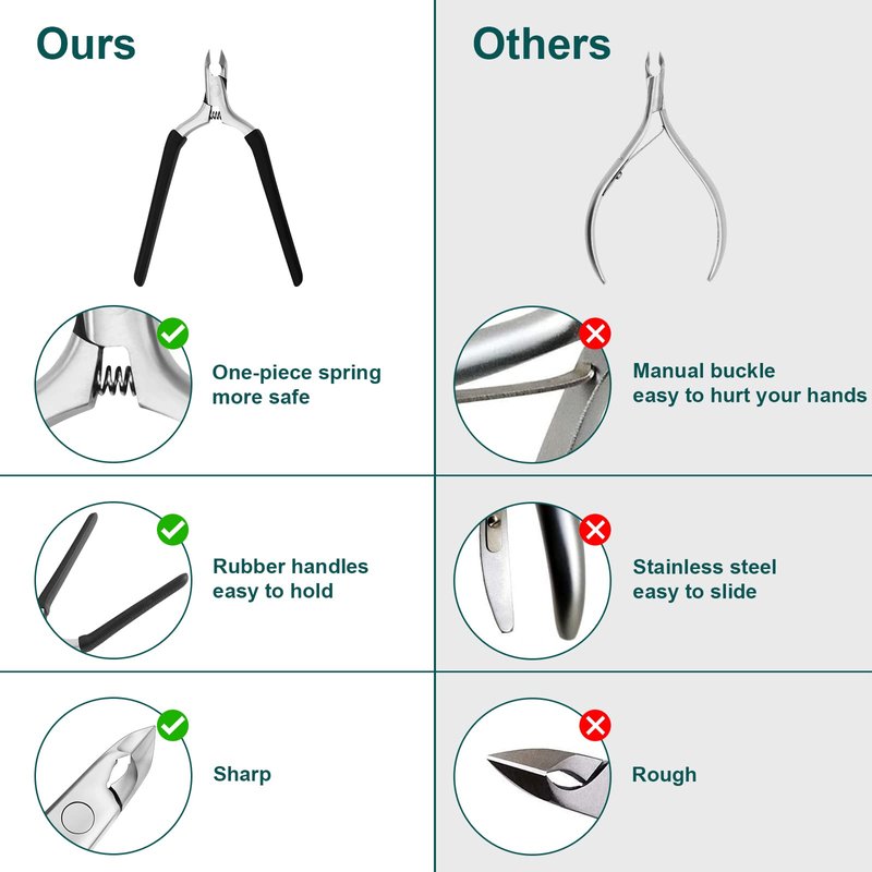 - 【Silicone Handle Cuticle Nippers】The black non-slip handle nail cuticle trimmer was designed for everyone, Especially suitable for those of us with dexterity issues. Making the cuticle trimmer easy to hold and control and gives you more control and grip while holding and cutting.