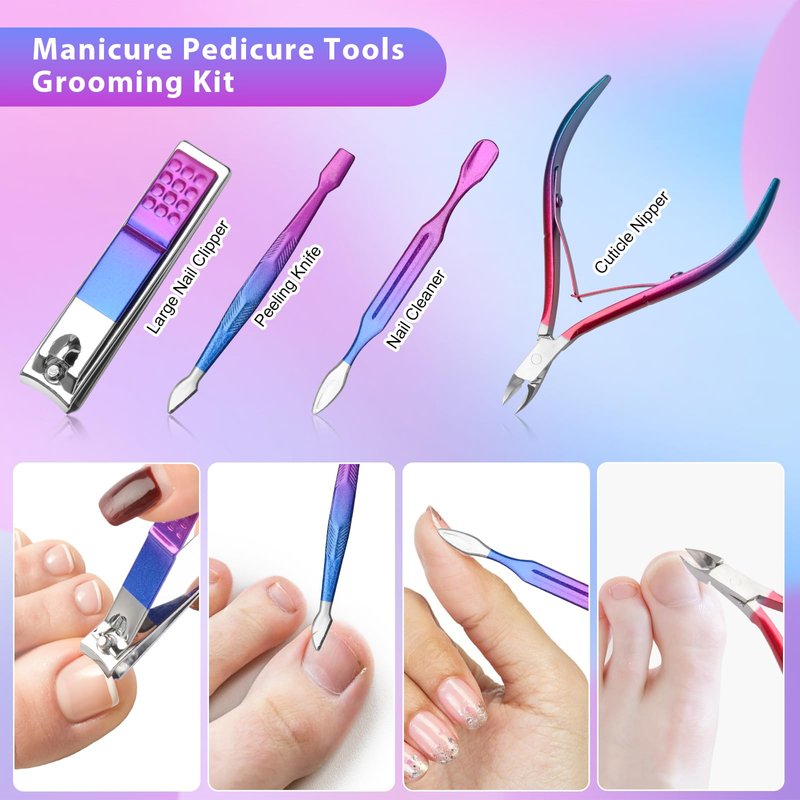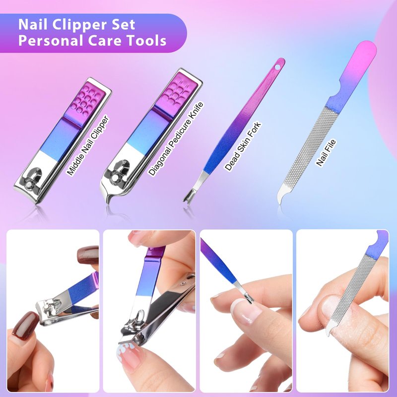 - Manicure Set Professional: Our stainless steel corta uñas are made of high quality steel, which is strong and durable, and it will not fade, extremely hard and sharp.Designed for lifetime