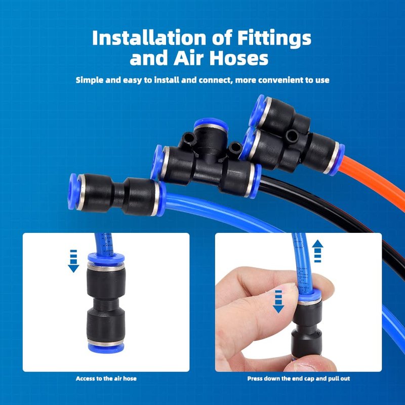 4. Easy to connect the air tube, just press easily to pull out the air tube, easy to install, simple and dexterous.