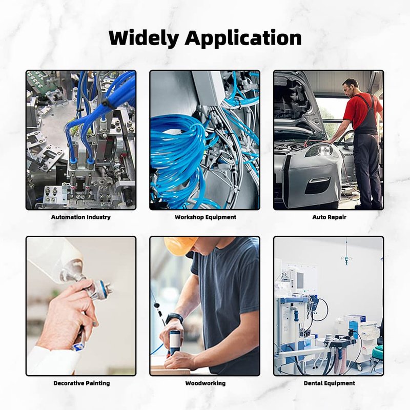 - ♥【High Quality】These air fittings are made of high quality plastic and are widely used for automatic industry, workshop equipment, auto repair ,decoration spray paint, woodworking, dental equipment, etc.