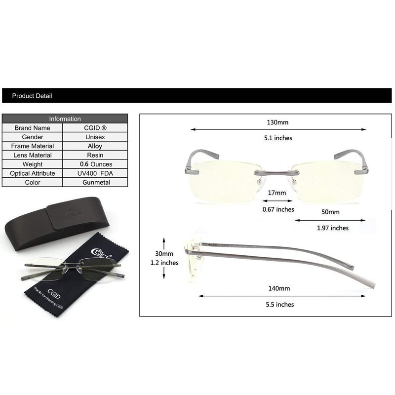 CGID Unisex Lightweight Rimless Frameless Rectangle Reading Glasses Mens Womens Spring Hinge Fashion Readers Reading Glasses +1.00