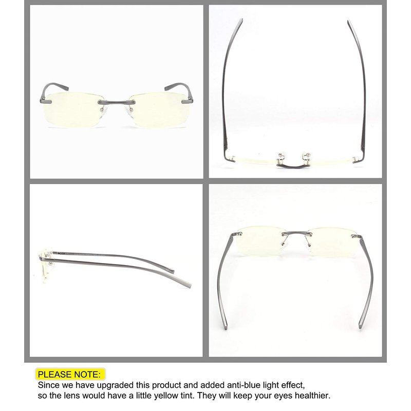 - BLUE LIGHT BLOCKING. If you wear reading glasses when using a computer, tablet or mobile phone, these glasses will help reduce the damage caused by blue light. Anti-blue light glasses relieve eye pain, discomfort and fatigue. These blue light blocking glasses have a slight yellow tinted because of the function.
