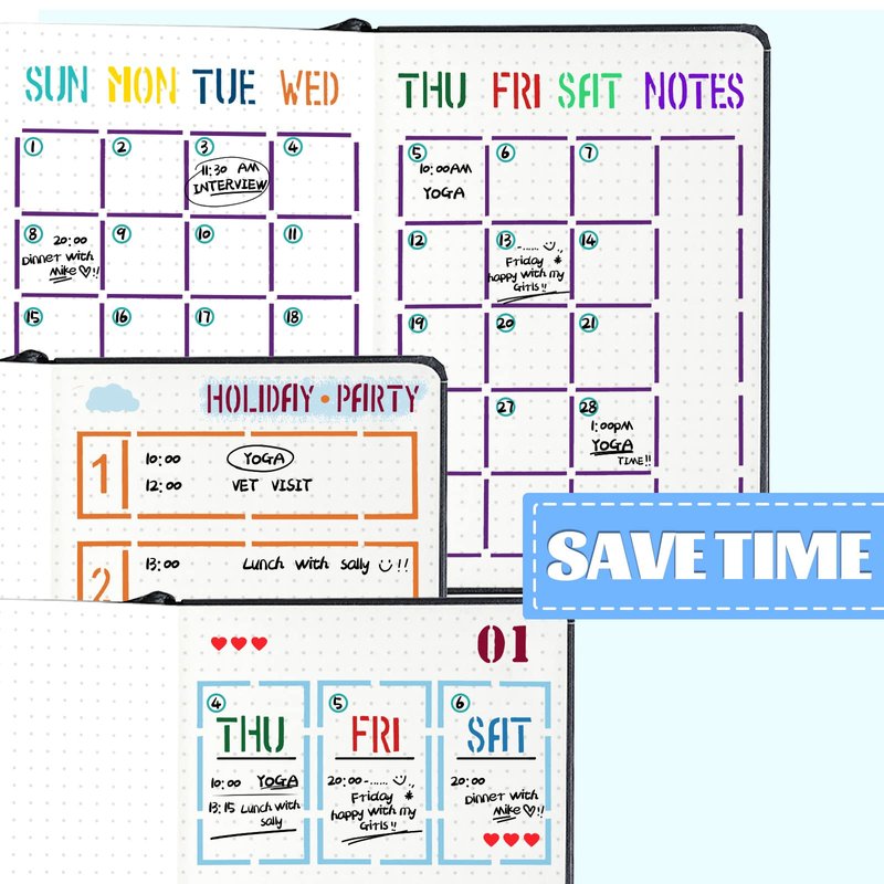 - Planner Stencil Material: Made of high quality Eco-friendly PET, Not only cleanable, but also flexible and sturdy, you can use these journal templates for a long time without worrying about it being broken.