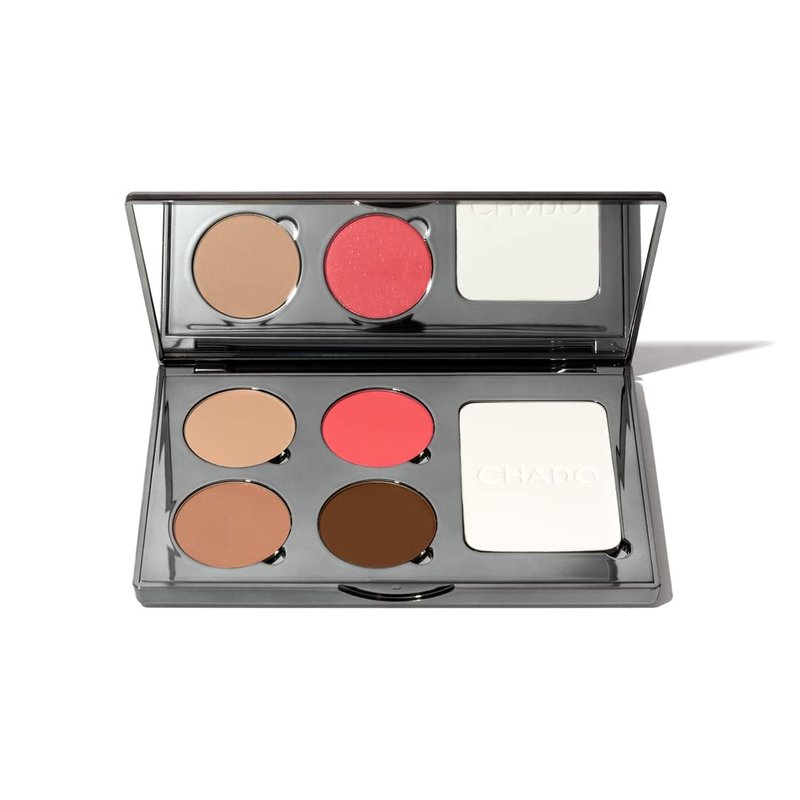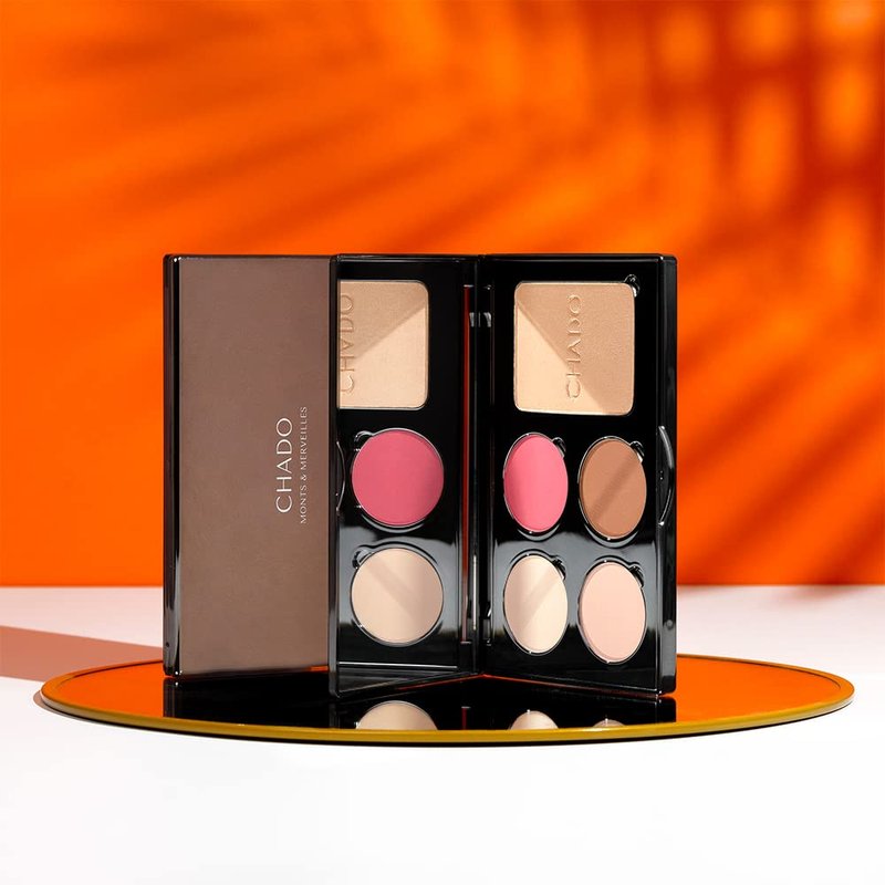This all-in-one palette offers 5 powders: blush, eye shadow, bronzer & contouring, as well as a mattifying setting powder. Result: natural and sculpted finish. Product benefits Vitamin E - has a moisturizing and anti-inflammatory action. PhytoCellTec Malus Domestica - ensures the longevity of skin cells. XANTHAN GUM - keeps the skin in good condition. LECITHIN - softens the skin. GLYCERIN - helps avoid the harmful effects of external factors on the skin. Suitable for all skin types. Draw Your Beauty CHADO is dedicated to enhancing and protecting your natural beauty. Never artificial or over the top, our makeup and skincare line is entirely made in Europe, from natural active ingredients, 100% cruelty-free and environmentally friendly. CHADO, A Respectful Brand CHADO is a brand that loves life, nature, and animals. Therefore, we are committed not to use any component resulting from animal testing. CHADO, aimed at every woman who wishes to sublimate their natural beauty with high-quality, innovative, elegant products. CHADO offers a range of dedicated, easy-to-use formulas and accessories for you to master the gestures of professional makeup at home.
