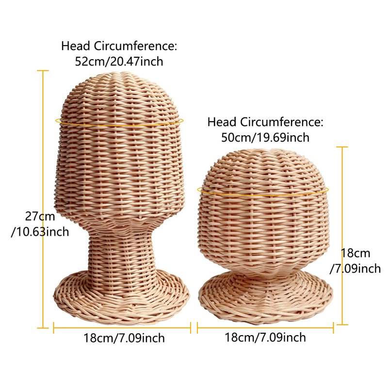- 【Size Details】- The Rattan Mannequin Head Stand is a beautifully handcrafted showcase for hats, caps, and wigs. Its compact size of 11" (H) x 7" (W) x 7" (L) makes it perfect for displaying fedoras, wedding hats, or decorative pieces, suitable for displaying in retail shops, salons, or at home.