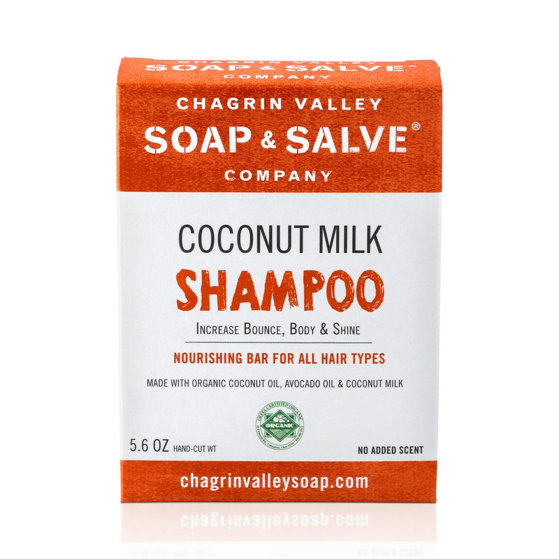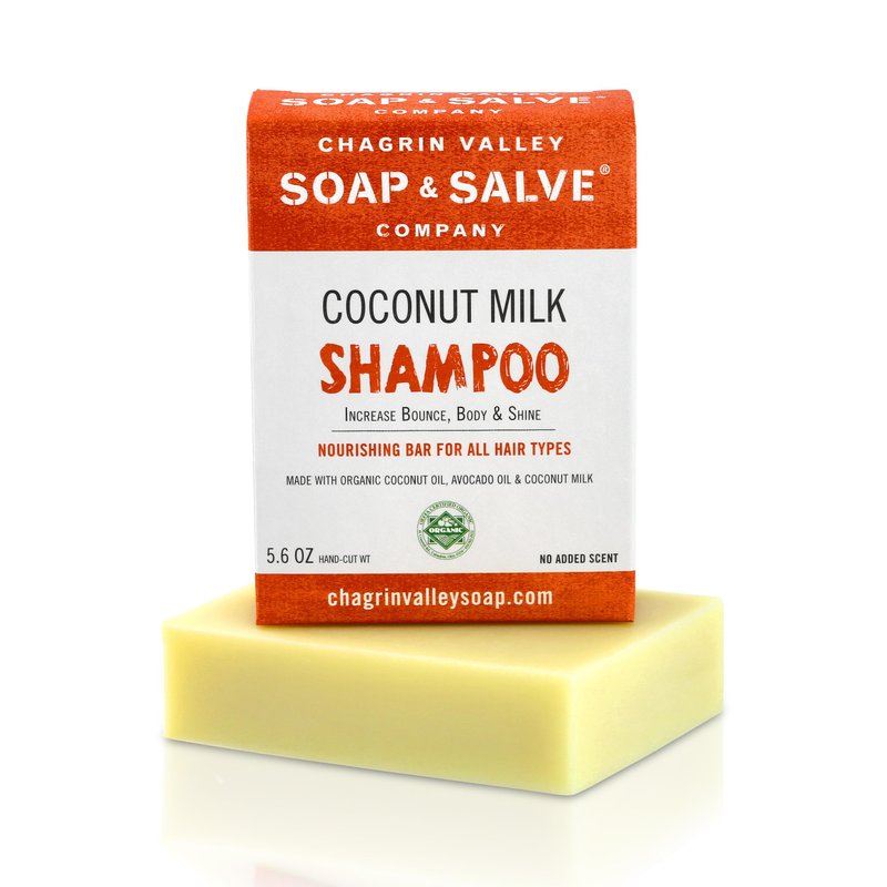 Chagrin Valley Soap & Salve Organic Natural Coconut Milk Shampoo Bar - Coconut Milk Softens, Moisturizes, Adds Body to Dry, Frizzy, Curly, or Damaged Hair – Vegan – Zero Waste - 5.6 OZ (159g) Bar