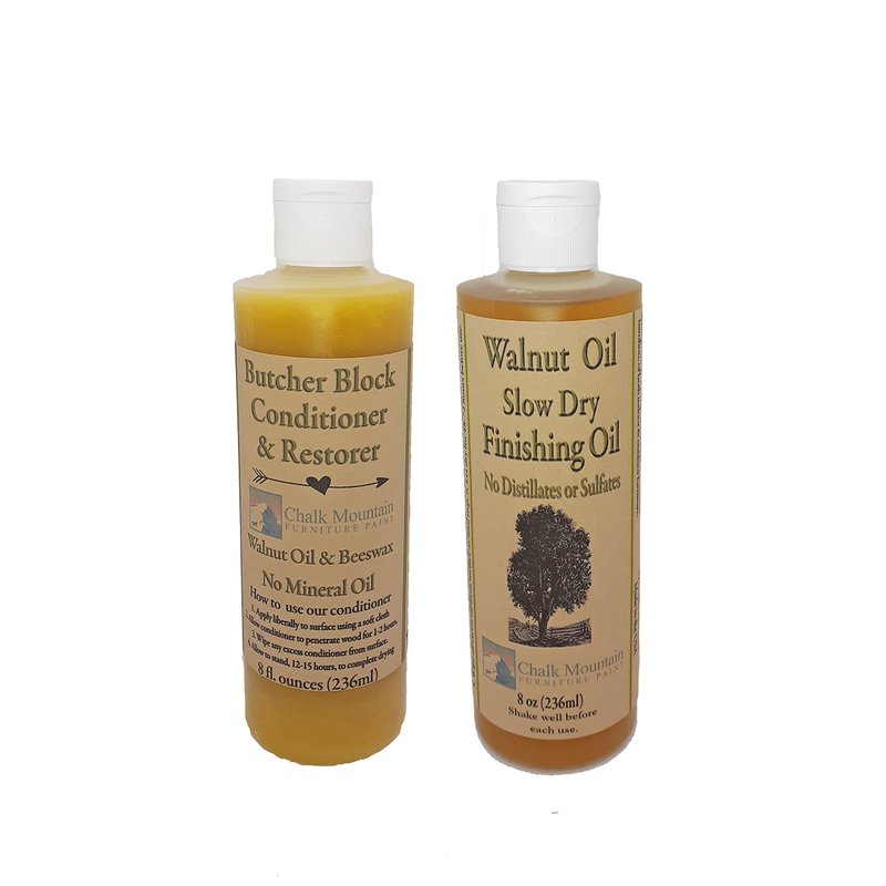 Chalk Mountain Brushes 8oz Walnut Oil Finisher and 8oz Butcher Block Oil Conditioner. 2 Pack